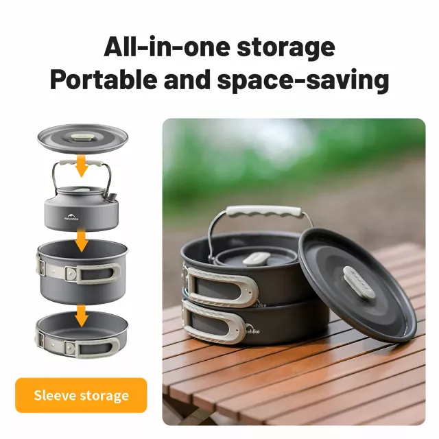 This set includes multiple pots and a handy teapot, giving you everything you need to cook for 4–7 people while outdoors. The foldable design makes it compact and easy to carry, perfect for packing in your backpack without taking up too much space. Whether you want to boil water for tea or coffee, cook pasta, or prepare a hearty soup, this set has you covered.
