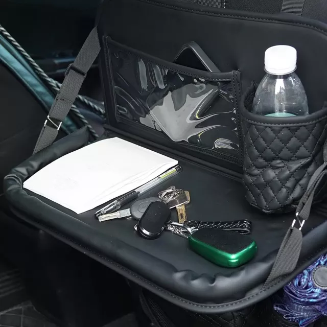 This high-quality seat back organizer is made from durable PU leather that resists wear and gives your car interior a refined finish. The built-in foldable tray serves as a mini table, ideal for eating, writing, or holding a tablet. Multiple compartments and pockets provide a perfect place for storing all kinds of essentials, from water bottles to books. Kick mats are included to keep your seat backs protected from muddy shoes and scuff marks—especially useful for families with kids.