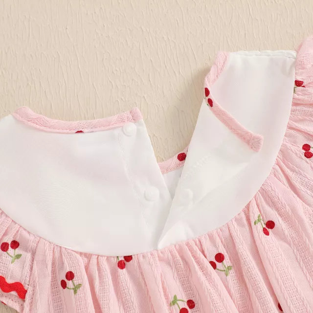 Looking for the perfect summer outfit for your baby girl? This adorable Cherry Embroidered Romper is designed to make your little one look extra sweet and stay cool on sunny days. With delicate cherry embroidery and fluttery fly sleeves, it brings the perfect mix of comfort and charm. Whether you’re planning a stroll in the park, a family outing, or a playful day at home, this romper adds a refreshing dose of cuteness to any summer day.