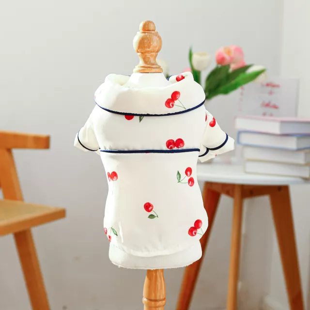 Whether you’re dressing up your pup for a sunny walk or simply adding a layer of style for lounging indoors, this cherry-print dog shirt is an instant favorite.