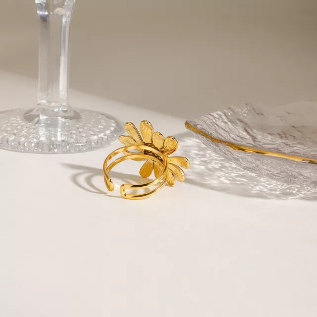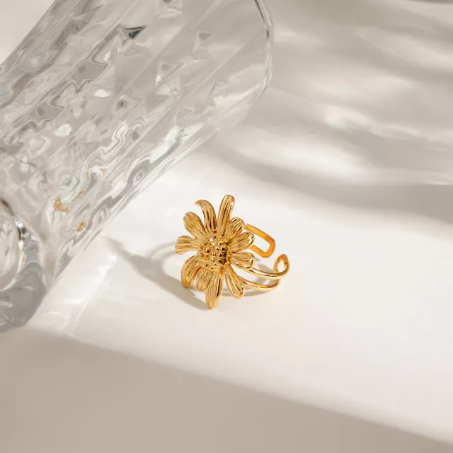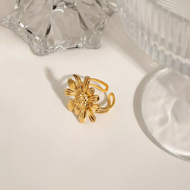 Step into the spotlight with the Classic Sunflower Cocktail Ring, a radiant blend of timeless charm and modern durability. Crafted with exquisite detail and finished in rich 18K gold plating over high-quality stainless steel, this waterproof ring is designed to keep its golden glow no matter where life takes you — from beach holidays to elegant evening parties. Inspired by the cheerful sunflower, this piece adds a warm, natural touch to your look while maintaining an effortlessly chic style.