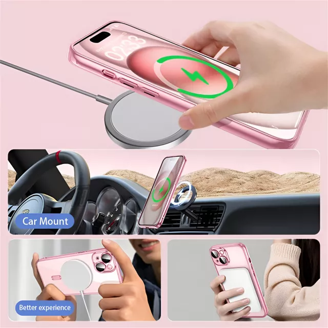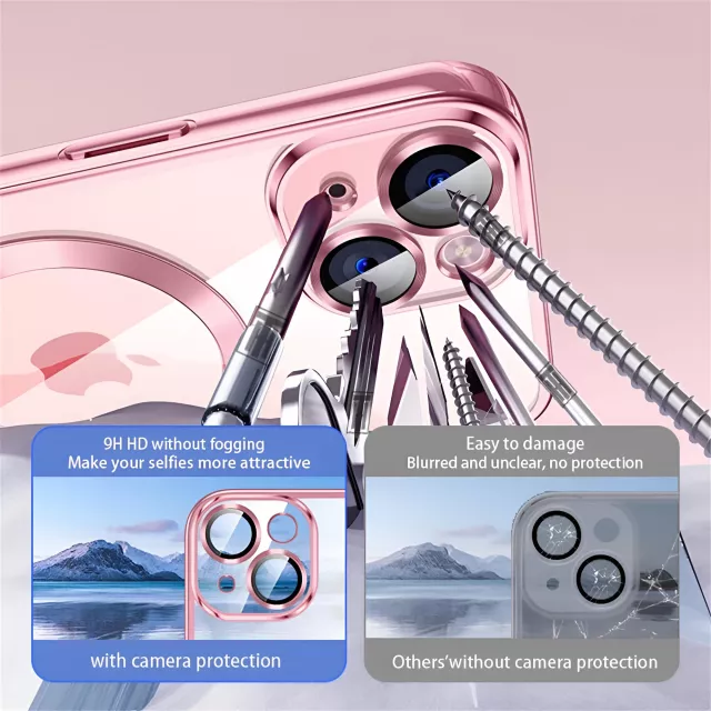 This case combines sleek aesthetics with functionality. The clear plating adds a touch of shine, while the soft silicone material offers a comfortable, non-slip grip. It comes with a built-in MagSafe magnetic ring for seamless wireless charging and a matching lens protector to keep your camera scratch-free and safe. Whether you’re heading to work, out with friends, or traveling, this case keeps your iPhone secure and stylish at all times.