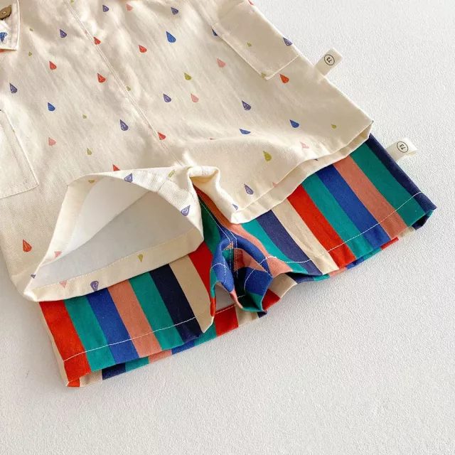 Make every summer day brighter with this charming Colorful Striped Raindrop Print Jumpsuit for girls. Designed for ages 9 months to 5 years, this playful outfit brings together vibrant patterns, soft fabrics, and an easygoing fit—perfect for your little explorer. Whether it’s a day at the park, a playdate, or a family outing, this outfit ensures your child stays comfy and photo-ready all day long.