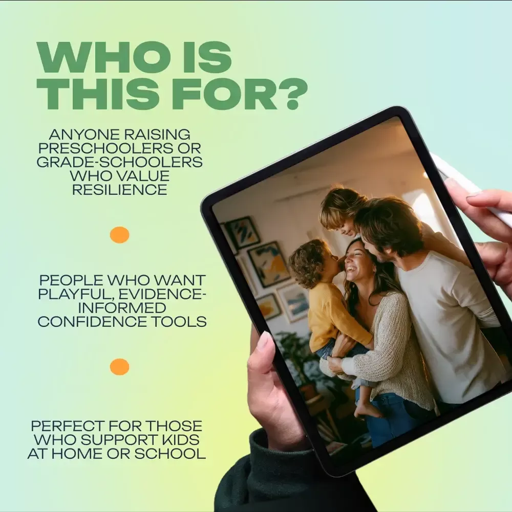 Parents, caregivers, and educators who want practical, play-based tools for building confidence and emotional literacy. Anyone supporting preschoolers and grade-schoolers who benefits from step-by-step prompts and printable resources. Perfect for busy families seeking gentle structure that fits real life.