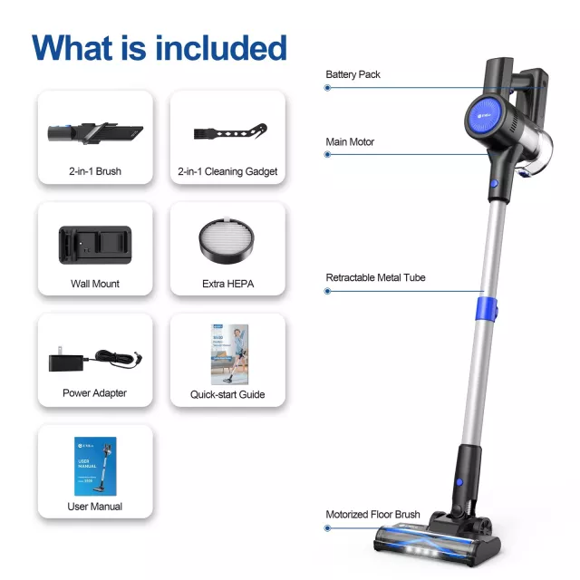 Keep your home spotless with this high-performance cordless vacuum cleaner that combines power, versatility, and convenience. With an impressive suction power of up to 25KPa and a durable 235W brushless motor, it easily tackles dust, crumbs, pet hair, cat litter, and other messes on hardwood floors, carpets, and every surface in between. Its lightweight design makes it easy to carry and maneuver, perfect for quick clean-ups or whole-house cleaning sessions.