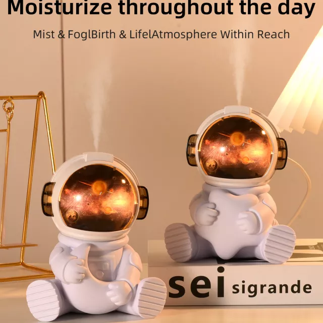Bring a touch of cosmic charm to your space with the Creative Astronaut Humidifier. Designed with an adorable astronaut figure sitting atop a glowing moon, this unique air humidifier combines fun, functionality, and wellness in one compact device. Whether placed on your nightstand, office desk, or living room shelf, it not only helps improve air quality but also doubles as a stylish decorative piece and a soothing night light. If you’re looking for a gift that’s both useful and charming, this is the perfect choice for space lovers and comfort seekers alike.