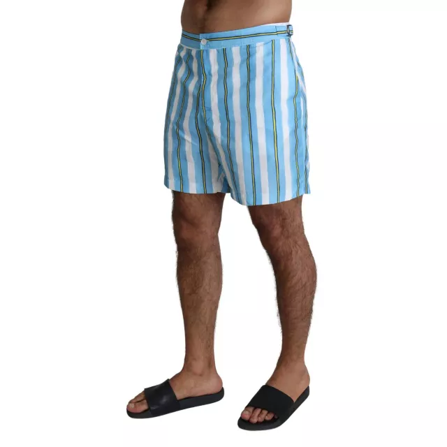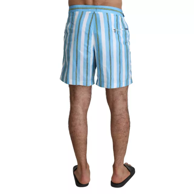 Step onto the beach or lounge poolside in true Italian luxury with these Dolce & Gabbana Men’s Blue Striped Swim Shorts. Crafted for the modern man who values both fashion and function, these exclusive swim trunks combine classic coastal charm with the signature sophistication of Dolce & Gabbana. Whether you’re hitting the waves or relaxing under the sun, these swim shorts are designed to keep you looking sharp and feeling comfortable all day long.