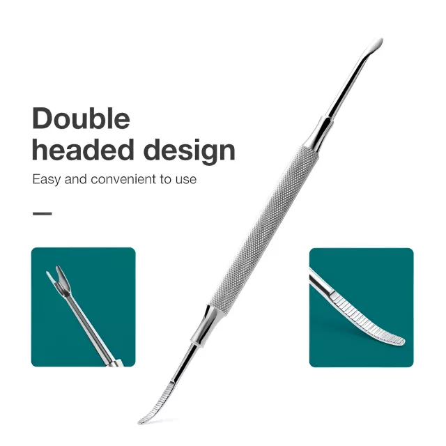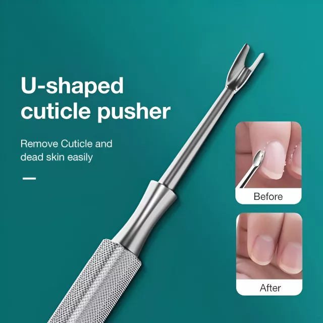 Featuring two precision-crafted heads, this tool is your go-to for multiple nail care tasks. One end works as a gentle yet effective cuticle pusher, helping you shape and move cuticles back without damage. The other end functions as a nail dirt cleaner or cuticle trimmer, giving you the power to tidy up every detail for flawless-looking nails. Made from premium stainless steel, this tool resists rust, stays sharp, and is easy to disinfect—making it perfect for both personal and professional use.