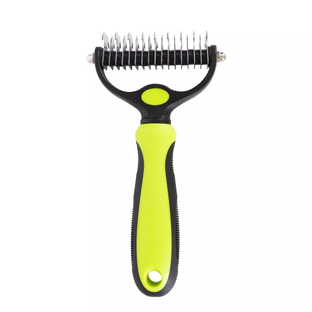 This comb is equipped with two sides—each crafted to target different grooming needs. One side features wider teeth for detangling and working through thick knots, while the other has finer teeth perfect for smoothing and finishing. Made from durable, pet-safe plastic, the comb is lightweight and easy to hold, even during longer grooming sessions.