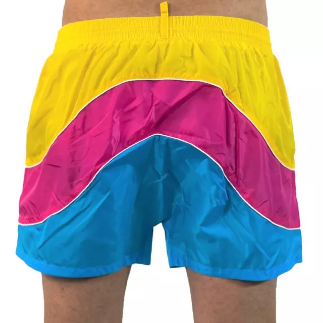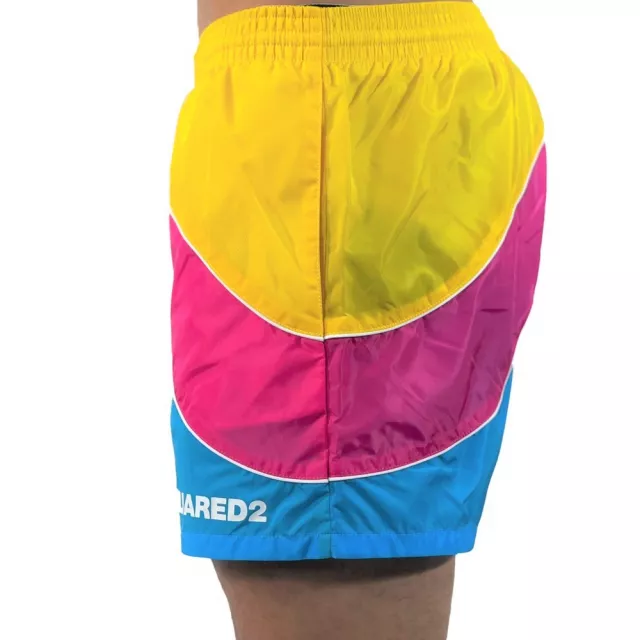 Crafted from 100% polyamide, these lightweight shorts offer a quick-drying, breathable fit that keeps you cool and comfortable from sun-up to sun-down. The vibrant multicolor pattern is paired with a bold DSQUARED2 logo print, making these shorts a standout piece in any swimwear collection. A snug yet flexible elastic waistband with a secure drawstring closure ensures the perfect fit, no matter how active your day gets.