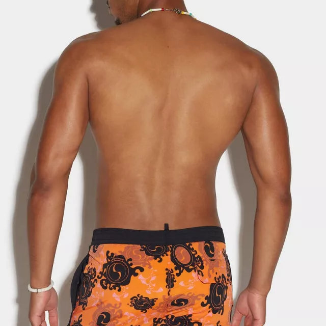 Crafted from a high-performance blend of 92% polyamide and 8% elastane, these shorts provide a smooth, flexible fit that moves with you. The bold orange and black design with signature DSQUARED2 print captures the brand’s unmistakable energy and fashion-forward attitude. The elastic waistband with an adjustable drawstring closure ensures a personalized and secure fit every time you wear them.
