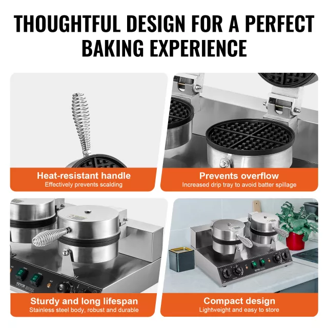 Get ready to double your waffle output and wow every customer or guest with perfectly cooked, golden goodness. Make this commercial-grade waffle iron your go-to breakfast essential today!