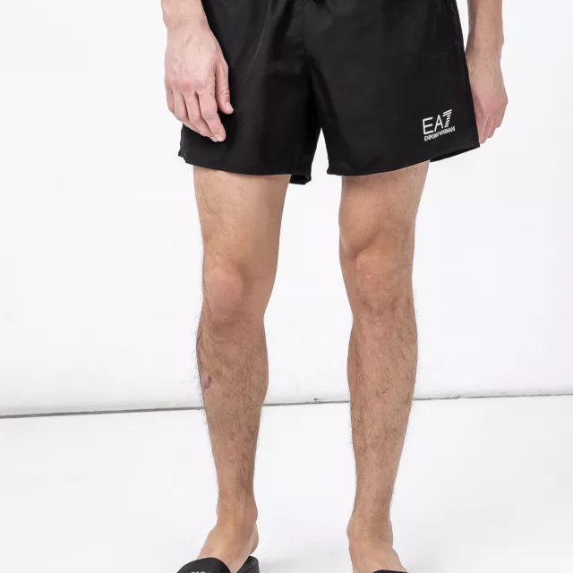 Crafted by EA7 – a brand known for its sporty elegance – this pair delivers a sleek, no-fuss aesthetic that’s effortlessly cool. The classic black color and plain pattern make it a versatile addition to your swimwear lineup, easily pairing with any beach tee or flip-flops. The lightweight construction ensures a barely-there feel, while the adjustable lace fastening keeps everything secure, no matter how active your day gets.