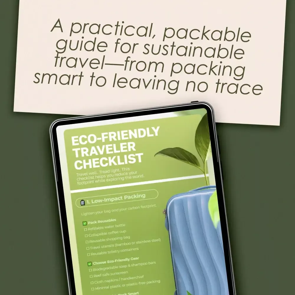 Download the Eco-Friendly Traveler Checklist now and take the guesswork out of sustainable travel. Small changes add up—your journey toward a healthier planet starts here.