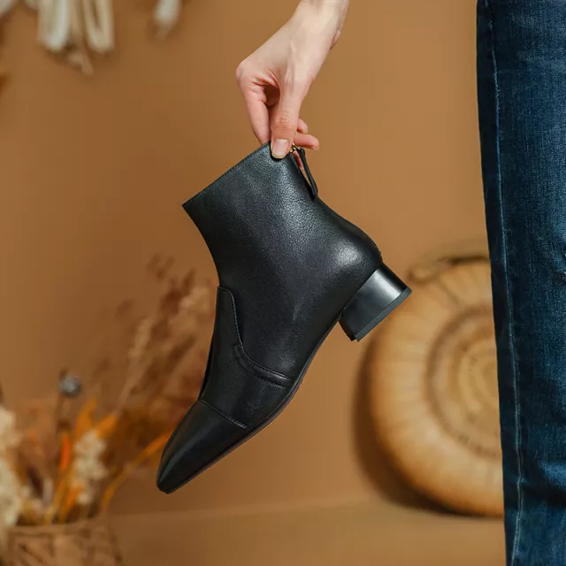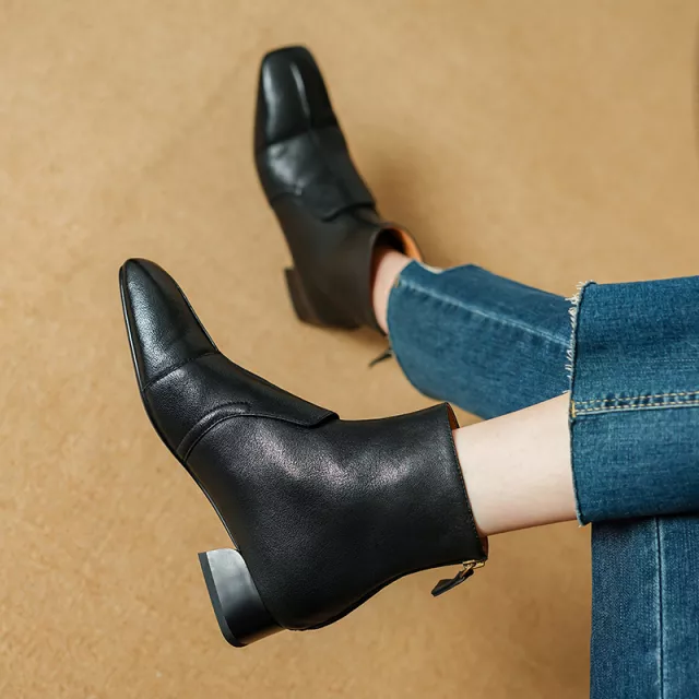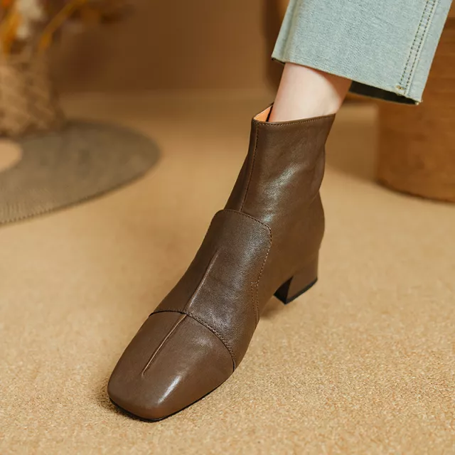Upgrade your cold-weather style with these elegant genuine leather ankle boots, designed for modern women who value both comfort and sophistication. Crafted from premium genuine leather and lined with buttery-soft leather, these boots feel as luxurious as they look. The chic square toe and sturdy square heel add a timeless touch, making them perfect for everyday wear or dressing up for the office. With a practical side zipper for easy wear, they are the ideal blend of fashion and function.