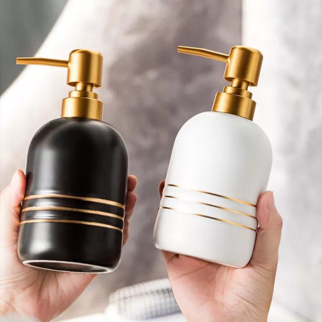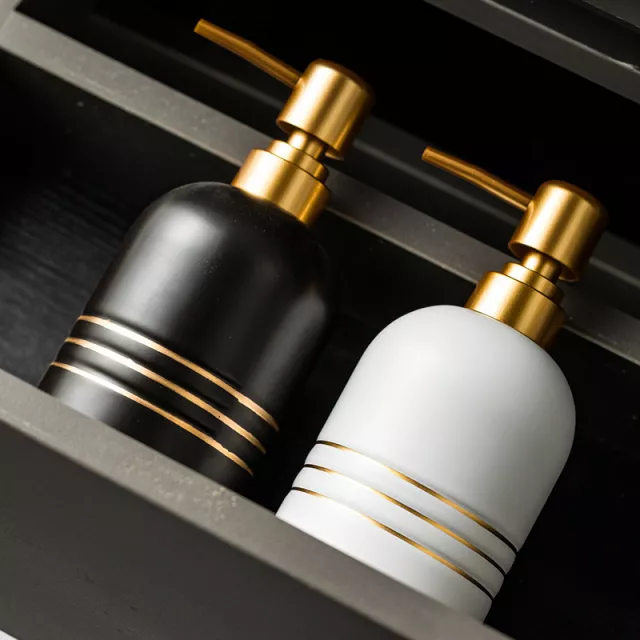This stunning gold frame ceramic dispenser adds a touch of elegance to any bathroom or vanity. Designed with a delicate oval shape and a chic gold accent, it is perfect for holding lotion, soap, shampoo, or shower gel. Its ceramic material feels smooth and solid, giving it a premium look that complements both modern and classic décor. Measuring approximately 7-8 inches in height, it’s the ideal size for everyday use without taking up too much counter space.
