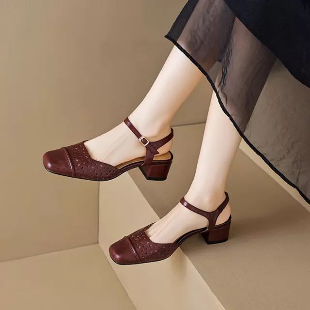 These sandals go beyond ordinary summer shoes. Their high-quality split leather upper combined with soft sheepskin lining offers a level of comfort you’ll appreciate from the first wear. The blend of covered toe protection, breathable hollow sides, and an easy slingback buckle design creates a flawless balance between modern chic and practical everyday wear. And the chunky square heel? It gives you lift without sacrificing stability — so you can walk, stand, and explore with confidence all day long.