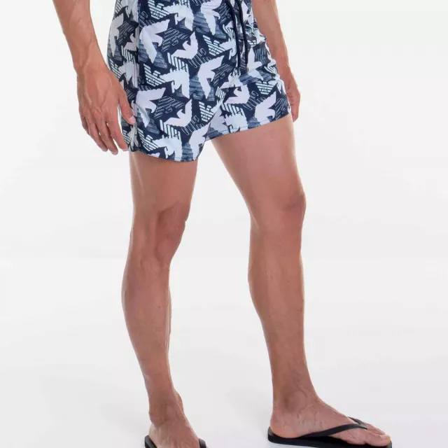 Crafted by Emporio Armani Underwear – a brand known for luxury, elegance, and quality – these swim shorts are built from 100% polyester, ensuring durability, quick drying, and lightweight wear. The soft fabric feels great against the skin, whether you’re swimming, sunbathing, or strolling along the shore. Their classic lace-up fastening provides a secure, adjustable fit, while the convenient front pockets add practicality and everyday ease.