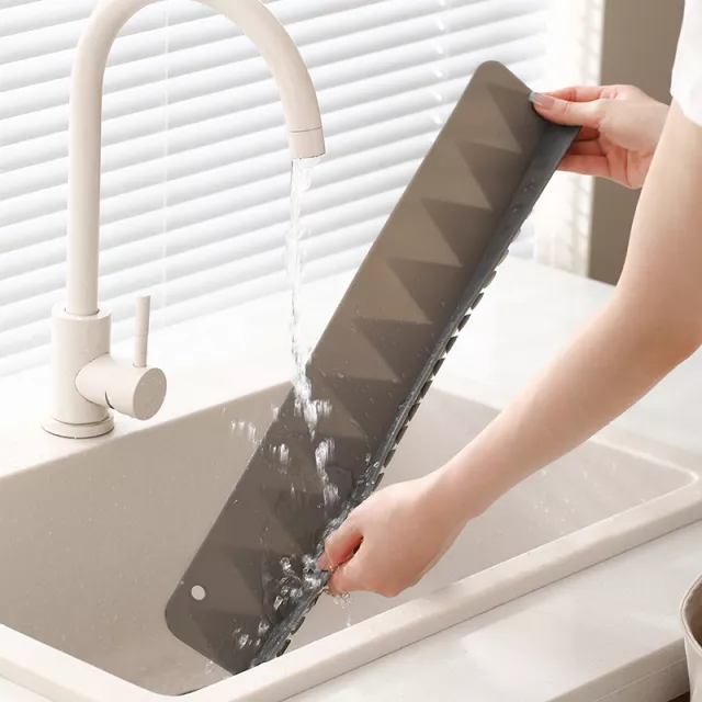 This splash guard is crafted from high-quality, food-safe silicone that’s soft, durable, and easy to clean. Measuring approximately 19.7 x 2.2 x 3.3 inches, it fits most standard sinks with ease. The expandable design allows you to adjust the length to match your sink, offering flexibility and a snug fit. The raised strip acts as a barrier, blocking splashes from reaching your countertops and clothes while doing the dishes.