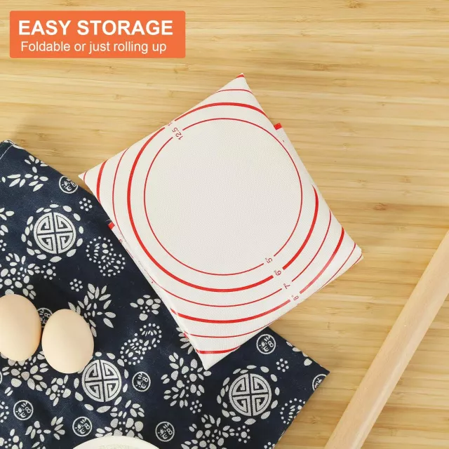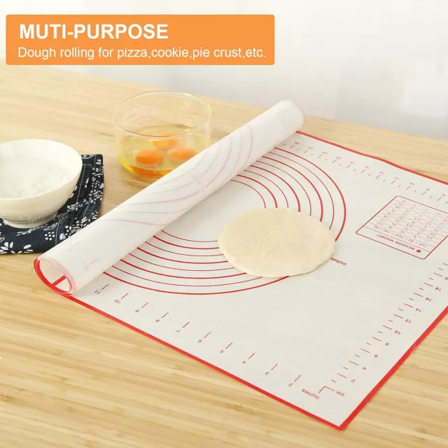 This mat is best used for rolling out pastry dough, fondant, cookie dough, pizza crusts, or even kneading bread. Whether you bake every day or just on the weekends, it makes the process smoother and more enjoyable. Great for use on countertops, tables, or even over a baking sheet.
