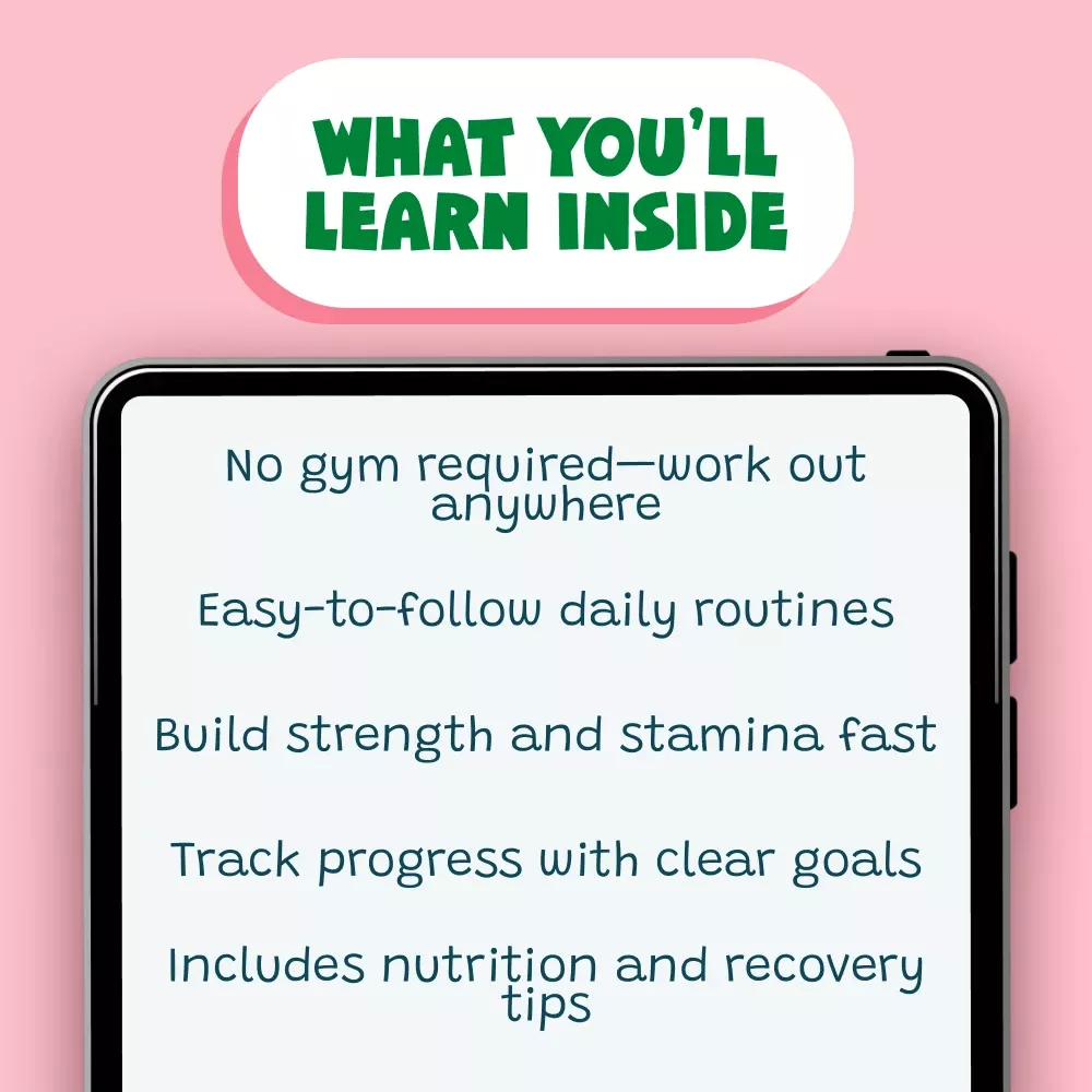 The 4-week workout plan is so well structured, it keeps me motivated every day! Plus, the exercises can be done anywhere at home which is super convenient.