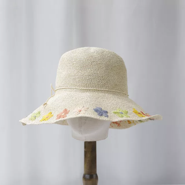 What makes this floral bucket hat so special is the care put into its handwoven construction and the stylish details that elevate a classic summer staple. The raffia material not only feels light and breezy but also gives the hat a naturally textured finish that’s both modern and timeless. With its floral flair, it stands out in all the right ways—perfect for those who love to mix function with a little fashion fun.