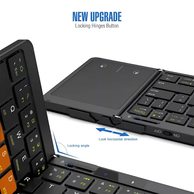 Upgrade your on-the-go productivity with the Folding Travel Keyboard with Touchpad & Display. Perfect for remote work, travel, or just getting things done anywhere, this compact, multi-functional keyboard is the ideal solution for today’s modern professional. Don’t miss out—get yours now and experience the convenience of typing anywhere, at any time!