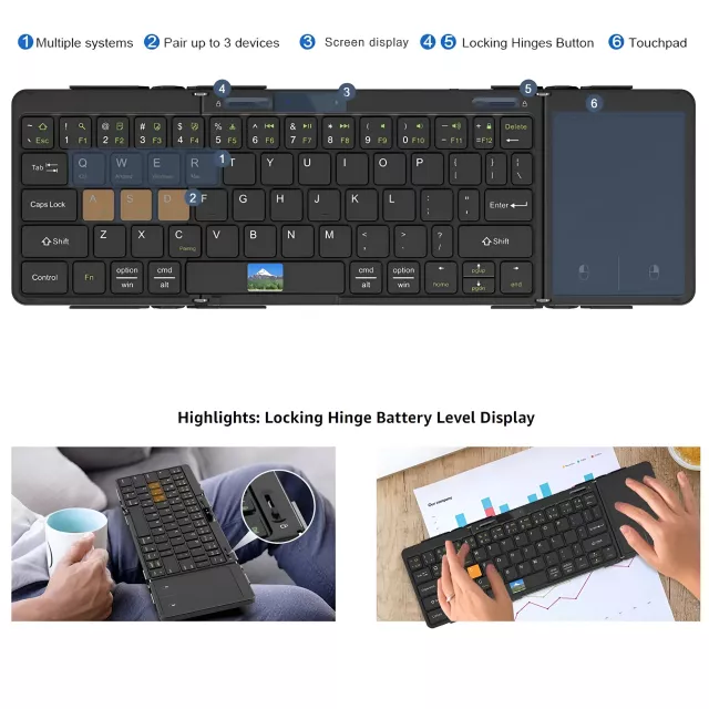 This versatile, foldable keyboard is perfect for those who work in multiple environments—whether at a coffee shop, during a business trip, or even on your couch. The combination of the comfortable key layout, responsive scissor switches, and multi-touch trackpad makes typing smooth and efficient, while the OLED display provides instant feedback on the keyboard’s status. Plus, the large touchpad gives you extra control over your devices without needing a mouse. Whether you’re managing multiple devices or simply typing up a document, this keyboard offers the flexibility and reliability you need.