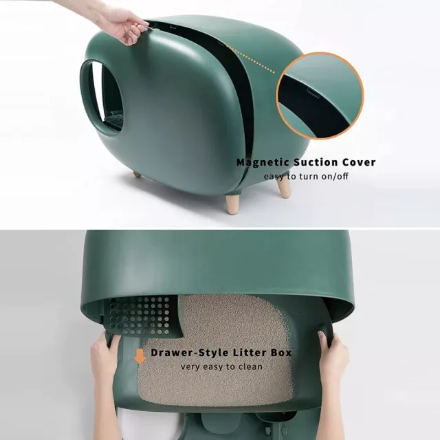I've been a cat parent for years and I've tried many different litter, but this mochi-shaped one really stands out. Not only does its enclosed design provide my cats with the privacy they love, it also helps to keep odors contained which is a huge plus. The high-quality plastic construction ensures durability while also making cleaning easy and efficient. And let's not forget about the aesthetics - available in various colors, it can easily blend into any room decor without looking out of place or unattractive.