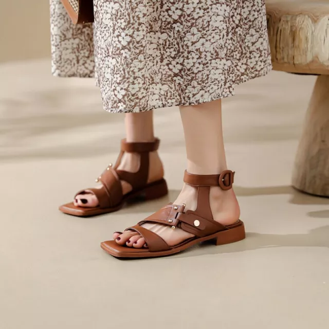 Step into the perfect balance of comfort and sophistication with these Genuine Leather Gladiator Sandals, designed to keep you stylish and confident all summer long. Featuring a chic square toe and low 1-inch heel, these sandals are a must-have for any woman looking to elevate her casual look while staying cool and comfortable in warm weather.