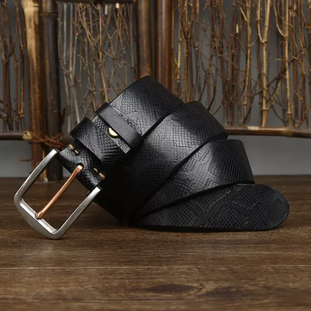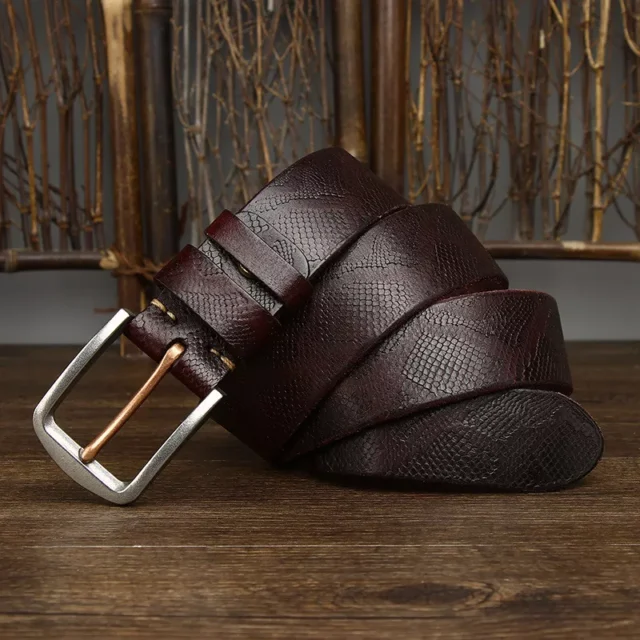 The belt features a stunning serpentine texture, adding a unique and retro touch that will catch the eye and elevate your overall appearance. Its wide 1.5-inch width provides the ideal balance between style and functionality, ensuring it fits perfectly with both jeans and dress pants.