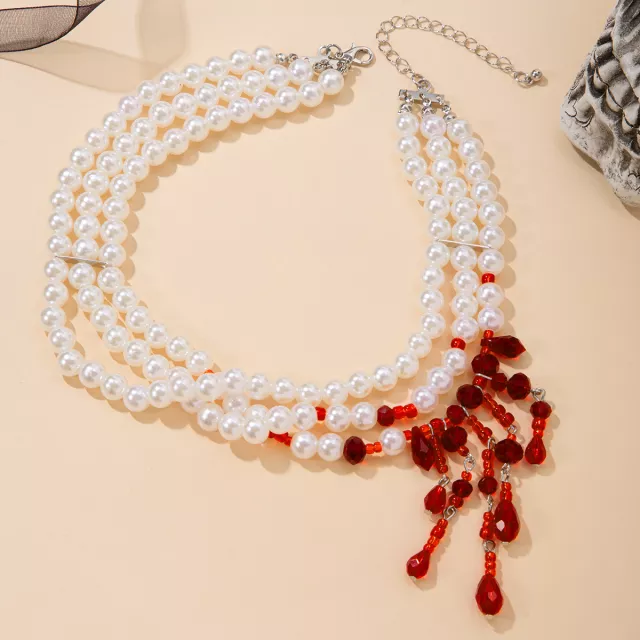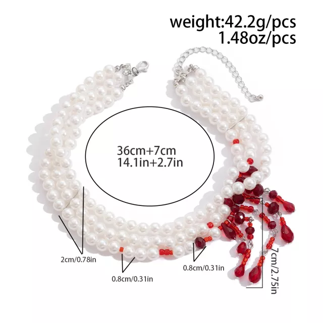 Step into a world of mystique and allure with this Gothic Red Crystal Pearl Choker Necklace. Designed for bold women who embrace their individuality, this multilayered choker blends elegance with a hint of the macabre. Featuring faux pearl bead chains and a striking red blood drop crystal centerpiece, this necklace is your perfect companion for Halloween, costume parties, or making a dramatic entrance at any evening event.