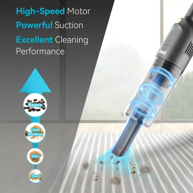 Weighing just 1.3 lb, this vacuum is easy to hold and maneuver, even for kids. The ergonomic design fits perfectly in your hand, while the compact size allows it to be stored conveniently in your car or a small drawer at home. With a 500ML transparent dustbin, you can clean more without frequent emptying. Simply press one button to switch between power modes for everyday messes or stubborn dirt.
