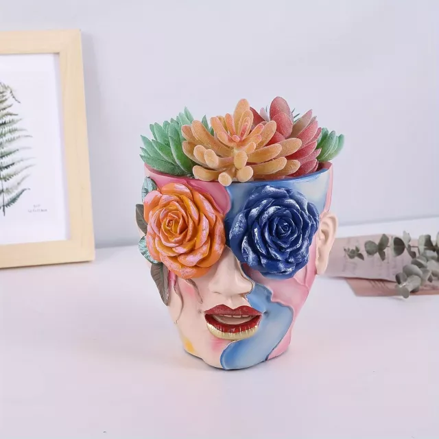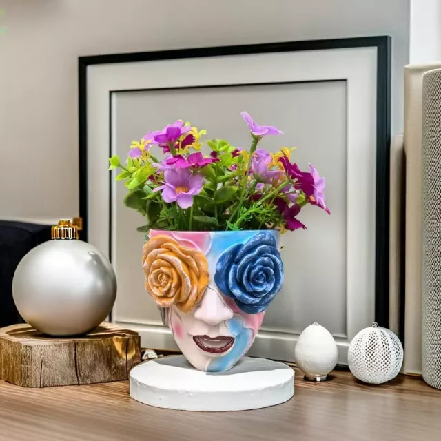 Crafted from durable resin, this medium-sized flower pot is perfect for both real and artificial plants. The smooth, high-quality finish ensures long-lasting use, while the vibrant hand-painted colors resist fading. With its modern art-inspired face design, this pot suits homes that celebrate creativity, joy, and individual expression. Lightweight yet sturdy, it can be placed anywhere—from sunny garden corners to cozy indoor nooks.