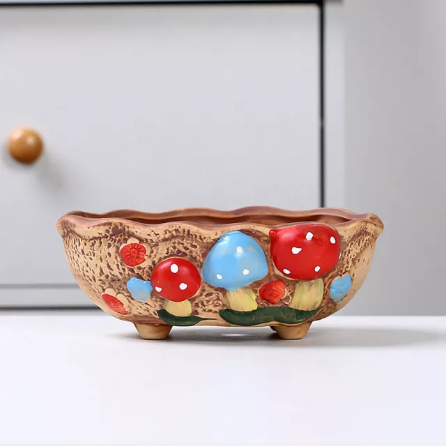 Crafted from premium glazed ceramic pottery, this flowerpot features a big-caliber mouth, allowing for easy planting and better airflow. Its handpainted red mushroom cap design gives it a unique, artisan finish, making each piece slightly one-of-a-kind. Sized at approximately 6.3 inches in diameter and 2.4 inches in height, it’s the perfect size for desks, shelves, or window sills.