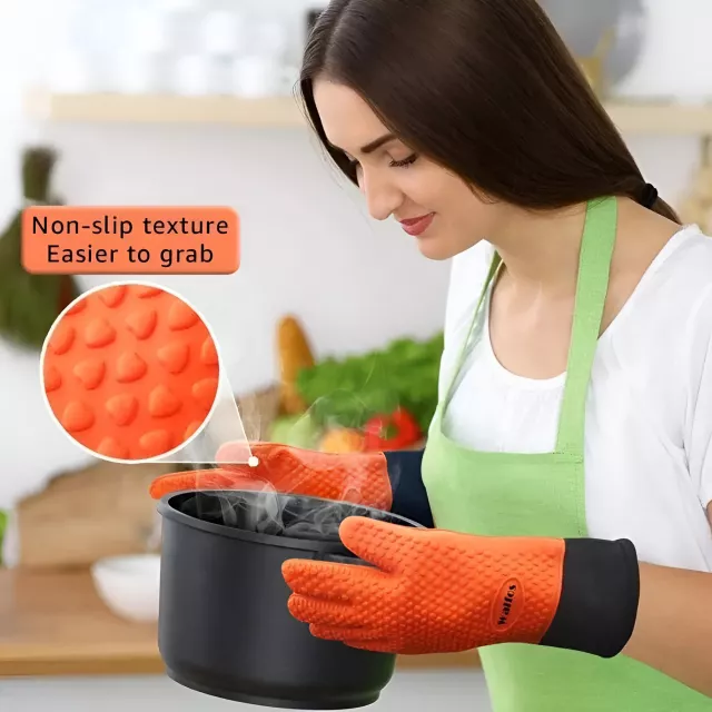 Don’t settle for flimsy, short-lasting mitts. Upgrade to a pair of reliable, food-safe silicone gloves that do it all. Comfortable, safe, and built to last — once you try them, you won’t want to cook without them. Order now and experience the perfect blend of heat protection and kitchen confidence.