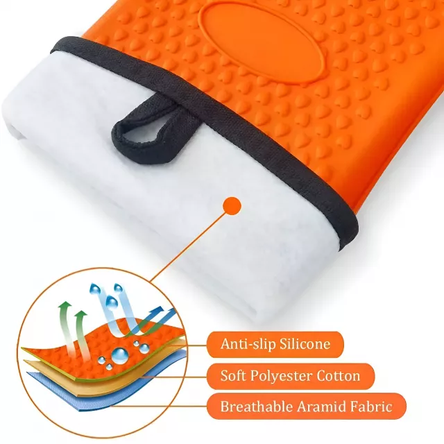 Built with a dual-layer design, these gloves feature a textured, non-slip silicone surface for superior grip, paired with a quilted cotton interior that stays cool and breathable. They’re heat-resistant up to 450°F, making them perfect for ovens, grills, smokers, and even open flames. Unlike bulky mitts that limit your movement, the five-finger flexible design allows for full dexterity and better handling of hot pans, trays, and tools.