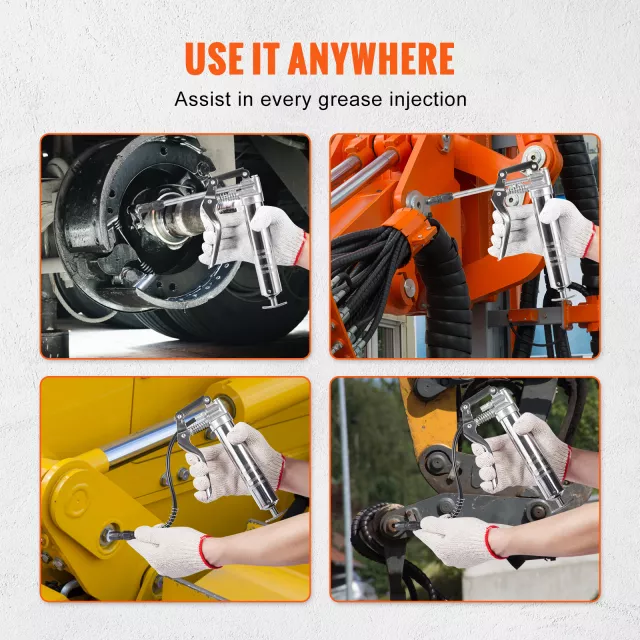 Whether you’re on the farm, at a factory, in the workshop, or out on the job site, this grease gun is built to perform. It’s best used when you need high-pressure lubrication in rugged environments—think tractors, trucks, loaders, and heavy machinery. Its reliability makes it ideal for daily maintenance and emergency fixes alike.