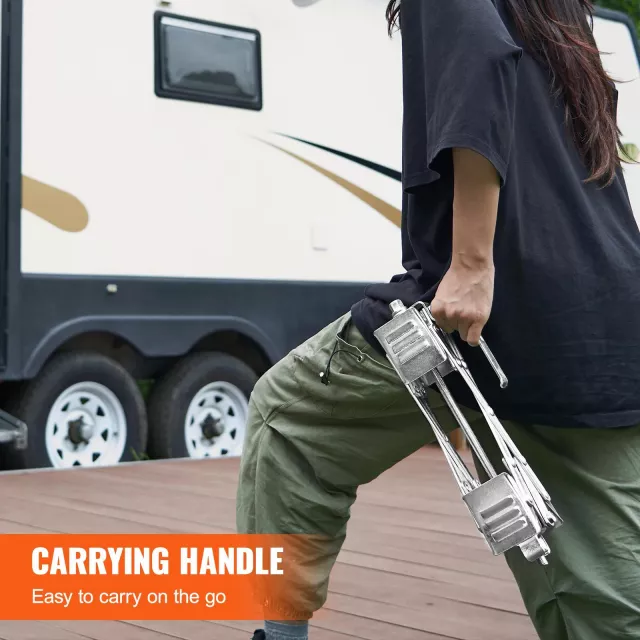 Don’t let unnecessary shaking spoil your camping experience. These camper wheel chocks provide firm tire-to-tire pressure to stop shifting before it starts. Strong, smartly designed, and easy to carry, they’re a simple way to add serious comfort and safety to your RV setup.