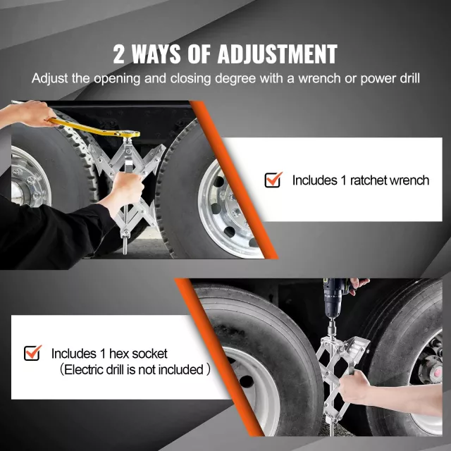 Crafted for versatility, these X-shaped RV wheel chocks are adjustable to fit tire gaps ranging from 1.5 inches up to 10 inches. That means they work perfectly with most RVs, travel trailers, campers, and even trucks. Simply use the included ratchet wrench or a power drill with the hex socket adapter to install them in under five minutes – no complex tools or technical skills required.