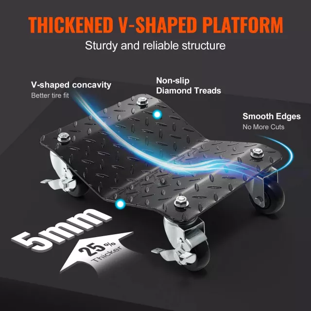 Perfect for vehicle maintenance, tire changes, or compact storage, these dollies are ideal for professional mechanics and weekend DIYers alike. With a smart concave platform designed to fit and grip tires up to 12 inches wide, you get enhanced friction and safety with every use.