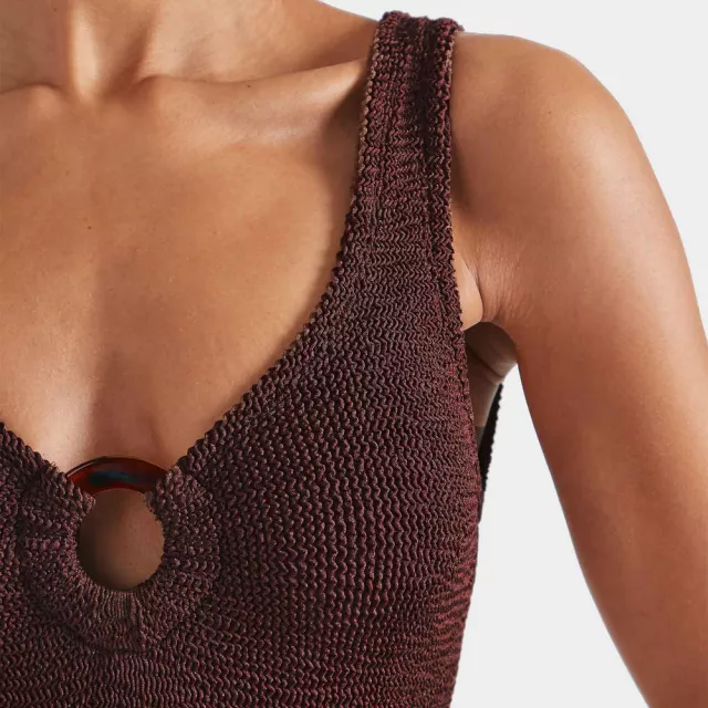 Crafted in Hunza G’s iconic Original Crinkle fabric, the Celine swimsuit stretches to adapt to your body like a second skin. Whether you’re petite, curvy, or somewhere in between, the flexible material molds to your shape, offering support without restrictive seams or padding. The textured finish adds a luxe dimension to the look, making it just as eye-catching as it is wearable.