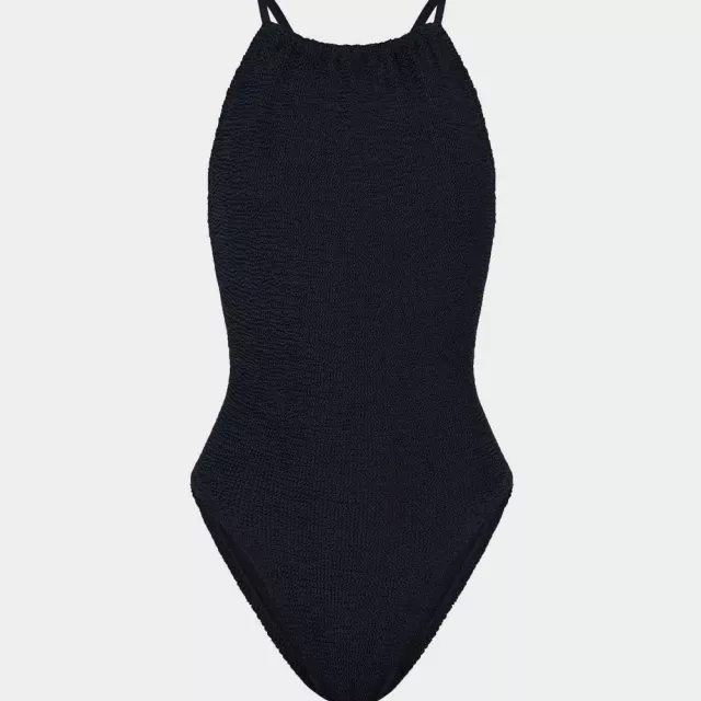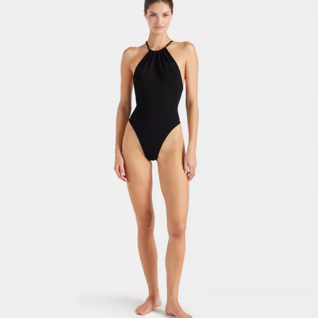 Elevate your swimwear game with the Portia High-Neck One-Piece Swimsuit by Hunza G — where sporty design meets timeless elegance. Whether you’re lounging poolside or diving into an ocean escape, this swimsuit is made to move with you. With its high-neck silhouette and refined crisscross back detail, the Portia swimsuit is a confident choice for women who want to blend active style with graceful charm.