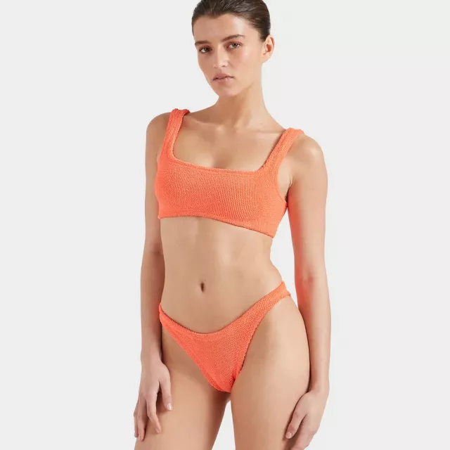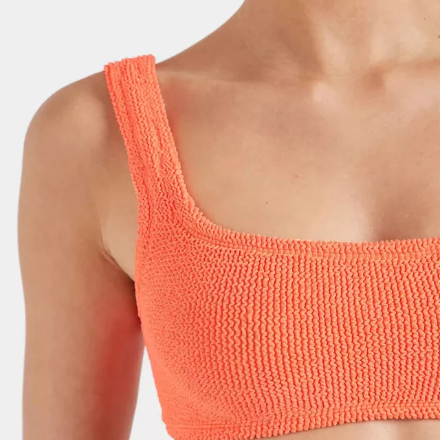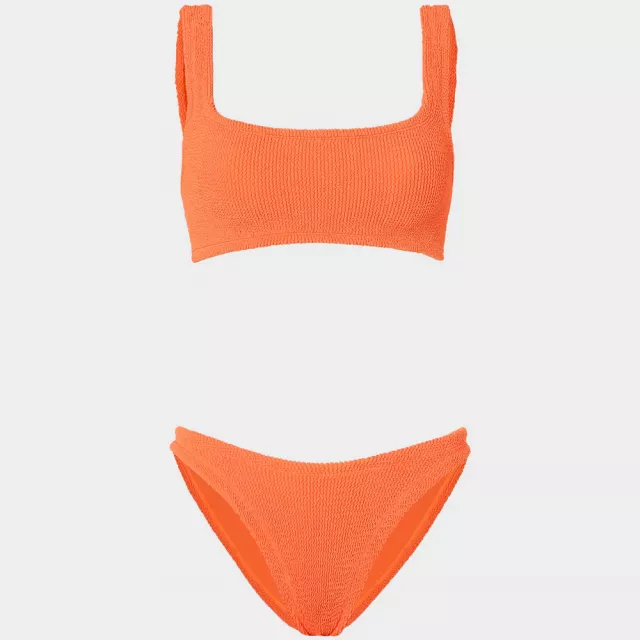 What truly sets this swimsuit apart is its ability to mold to your body without compromising on style. Thanks to Hunza G’s exclusive crinkle-textured fabric, every piece naturally conforms to your figure while offering firm yet flexible support. No zippers, no padding, no fuss — just pure comfort and confidence in a classic silhouette.