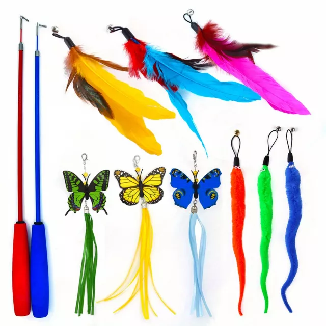 Bring endless fun and excitement to your furry friend’s day with this Interactive Feather Cat Toys 11-Pack. Designed to spark your cat’s natural hunting instincts, these feather wands are perfect for keeping your kitten or adult cat active and entertained. Each toy features vibrant feathers paired with a gentle bell that jingles with every swipe, adding an extra layer of fun to playtime. Without any batteries or electrical parts, these toys rely on simple, safe, and natural materials to captivate your pet’s attention.