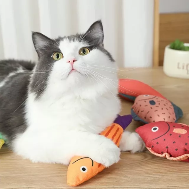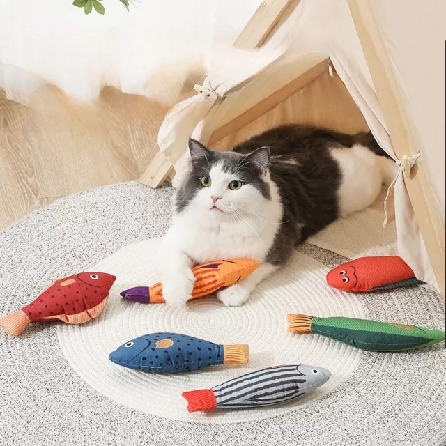 This plush fish cat toy is best used during active play sessions or as a comforting companion when your pet is winding down. It encourages natural hunting behaviors like stalking, biting, and kicking, which can reduce anxiety and provide healthy exercise. Thanks to its realistic design, your cat will be instantly drawn to it—making it one of the most loved toys in their collection.