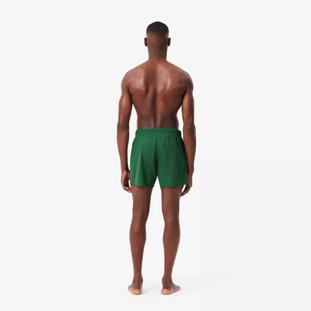 Crafted from 100% high-quality polyester, these swim trunks are lightweight, fast-drying, and built for movement. The plain green color gives a crisp, minimalist look that pairs easily with any beachwear or casual tee. A secure elastic waistband ensures a snug fit, while breathable fabric keeps you cool and comfortable all day long. As always, Lacoste brings its signature sophistication to even the most relaxed styles.