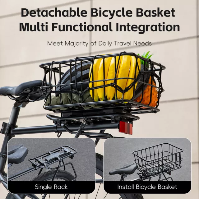 Whether you’re commuting to work, heading out for a weekend ride, or going on a shopping trip, this rear basket rack is your reliable partner. It simplifies transporting bulky or heavy items without compromising your bike’s performance. Its quick release design means you can quickly switch between rides with or without the basket, making it highly adaptable for any cycling lifestyle.
