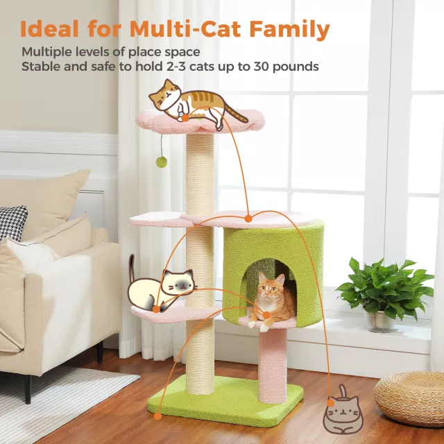 Turn your home into a feline paradise with our Large Cat Tree Tower featuring a cozy condo, whimsical flower perches, and ultra-thick scratching posts. Built to support medium to large cats — including Maine Coons and other big breeds — this multi-level cat tree is the purr-fect mix of fun, comfort, and stability. Whether your kitty loves climbing, scratching, or lounging, this tower satisfies every instinct in one stylish package.