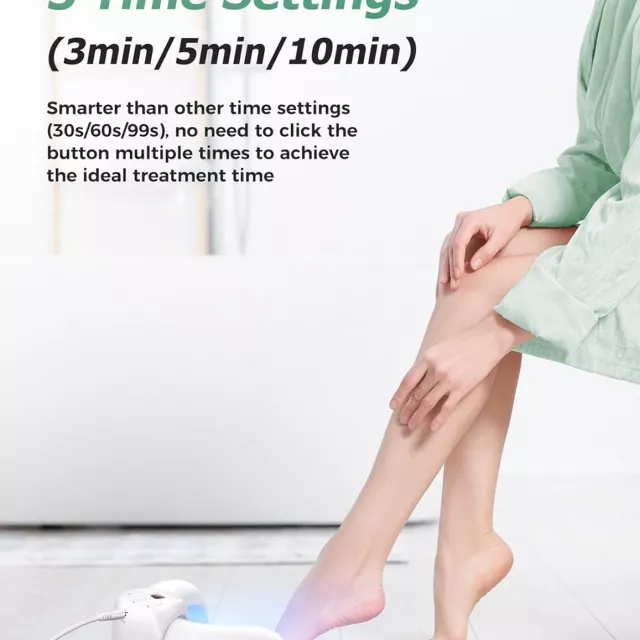 The device features a sleek, semi-arc design that comfortably fits both hands and feet. With easy USB plug-in power and three automatic treatment time settings—3, 5, or 10 minutes—you can sit back and relax while it does the work. The built-in timer display ensures precision and control, making it perfect for daily or weekly therapy sessions. The compact, lightweight design makes it easy to store, carry, and use anywhere.